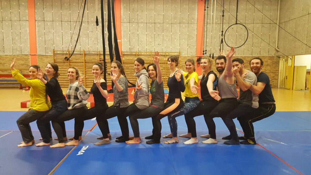Nous proposons également des ateliers d’aériens, une discipline spectaculaire et accessible, qui apporte à l’équipe :